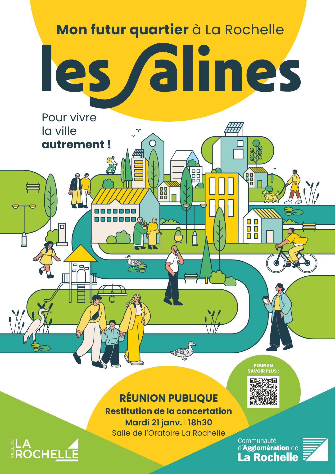 - Mardi 21 janvier 2025 à 18h30 : un forum de restitution proposera une synthèse des contributions recueillies dans le cadre de l’ensemble de la démarche de concertation. Rendez-vous à la salle de l’Oratoire de La Rochelle.